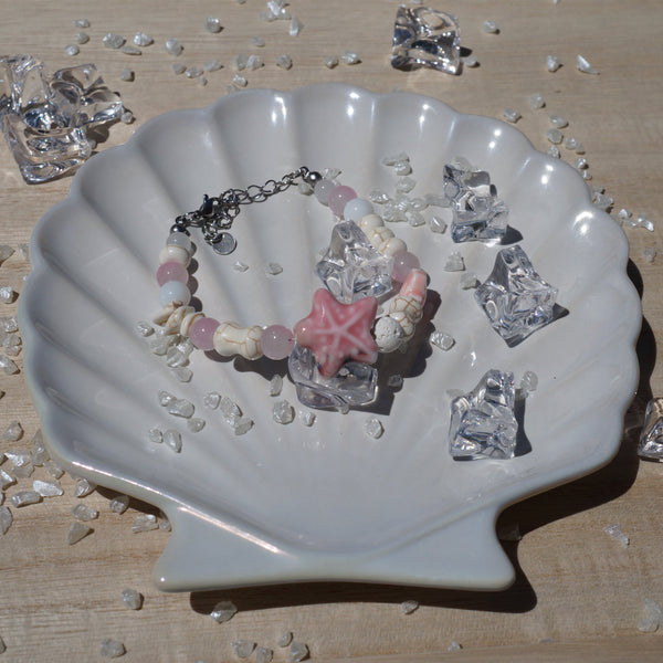 Elevate your summer style with our Sea Stars bracelet. This stylish accessory is adorned with delicate sea stars, perfect for adding a touch of seaside charm to any outfit. Embrace the warm weather and channel beach vibes with this must-have bracelet.